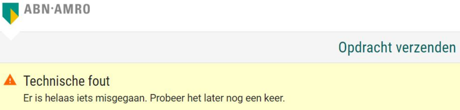 Bij het koppelen van een ABN Amro rekening kan je in sommige gevallen de melding “Technische fout” krijgen nadat je bevestigd hebt dat je ‘derde partij toegang’ wilt geven.