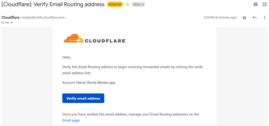 Cloudflare e-mail verificatie E-mail Cloudflare verificatie e-mail. Klik op Verify email address om het e-mail adres te bevestigen.