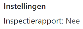 - De opbouw van het inspectierapport is niet aan te passen. Wel zijn sommige onderdelen in of uit te schakelen via Instellingen.
