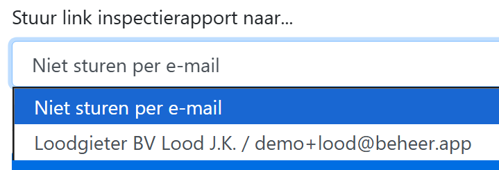 De link naar het inspectierapport kan automatisch worden gemaild naar een externe partij.