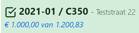 Om het restant bedrag te koppelen aan een volgend contract, klik je op de tekst met hoeveel gekoppeld is “€ …. van € ….”. Zie voorbeeld hieronder.