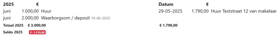 Zonder correctie staat er nog een bedrag van € 1.210 open om te ontvangen van de huurder.