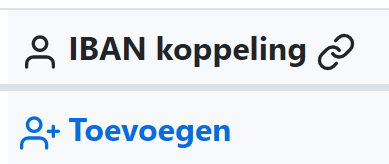 Wanneer een IBAN rekeningnummer van een banktransactie niet bekend is (lees: niet gekoppeld aan een contactpersoon in beheer.app), kan de IBAN toegevoegd worden aan een contactpersoon. Klik hiervoor in de kolom ‘IBAN koppeling’ op ‘Toevoegen’.