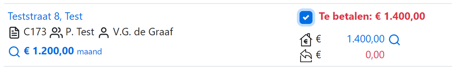Wanneer een huurder een betalingsachterstand heeft, wordt dit aangegeven d.m.v. "Te betalen". Zie hierna instructies voor het sturen van een betalingsherinning.