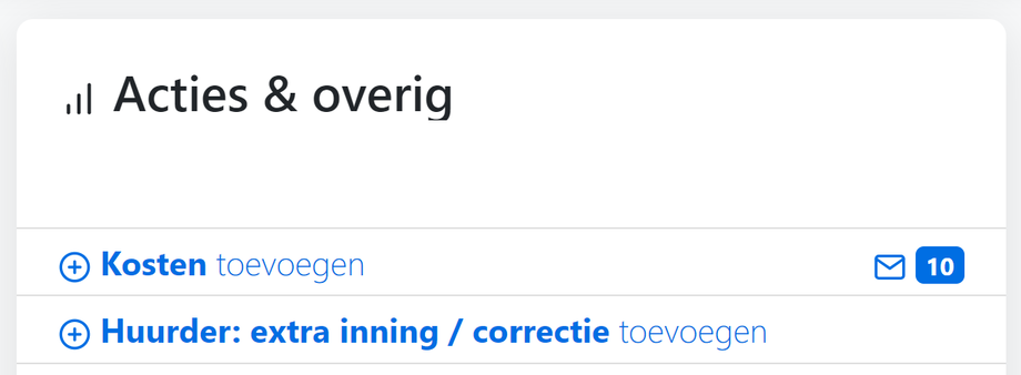 Als de huurder bepaalde kosten heeft voorgeschoten die ten laste van de eigenaar horen te komen, dienen deze kosten via Kosten toevoegen toegevoegd te worden.