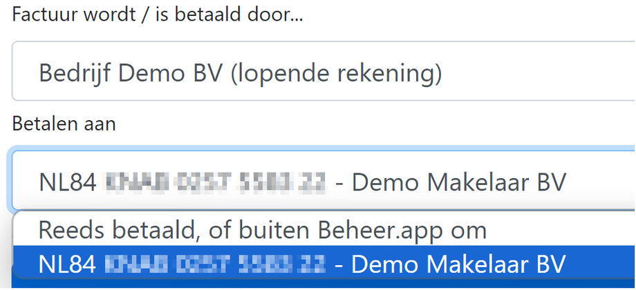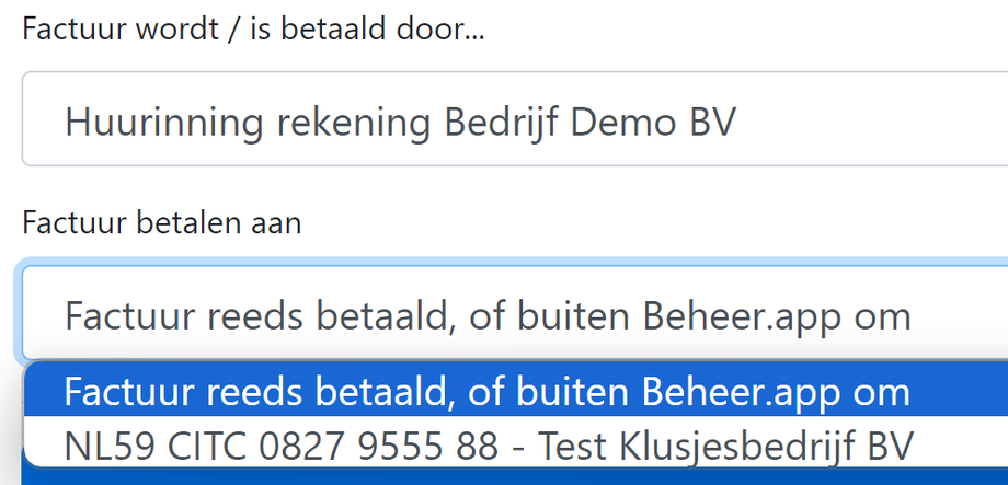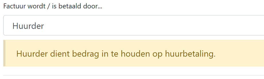 Bij Inhouding/verrekening kan gekozen worden dat de huurder de kosten betaald heeft. Deze kosten worden dan aangemerkt als een betaling van de huurder. De huurder betaalt dit bedrag dan de komende periode minder.