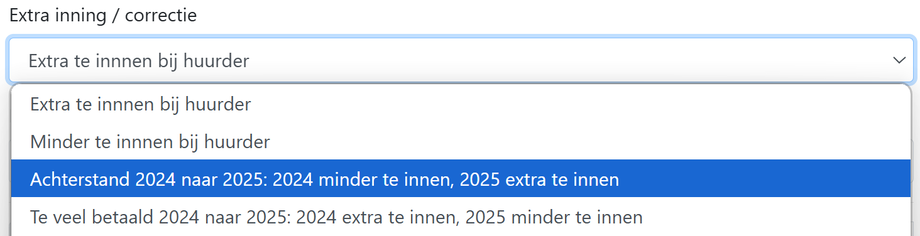 Om een achterstand, of voorstand, over te hevelen naar het nieuwe jaar kan een correctie toegevoegd worden. Dit kan enkel als het contract nog actief is gedurende (een deel van) het nieuwe jaar.
